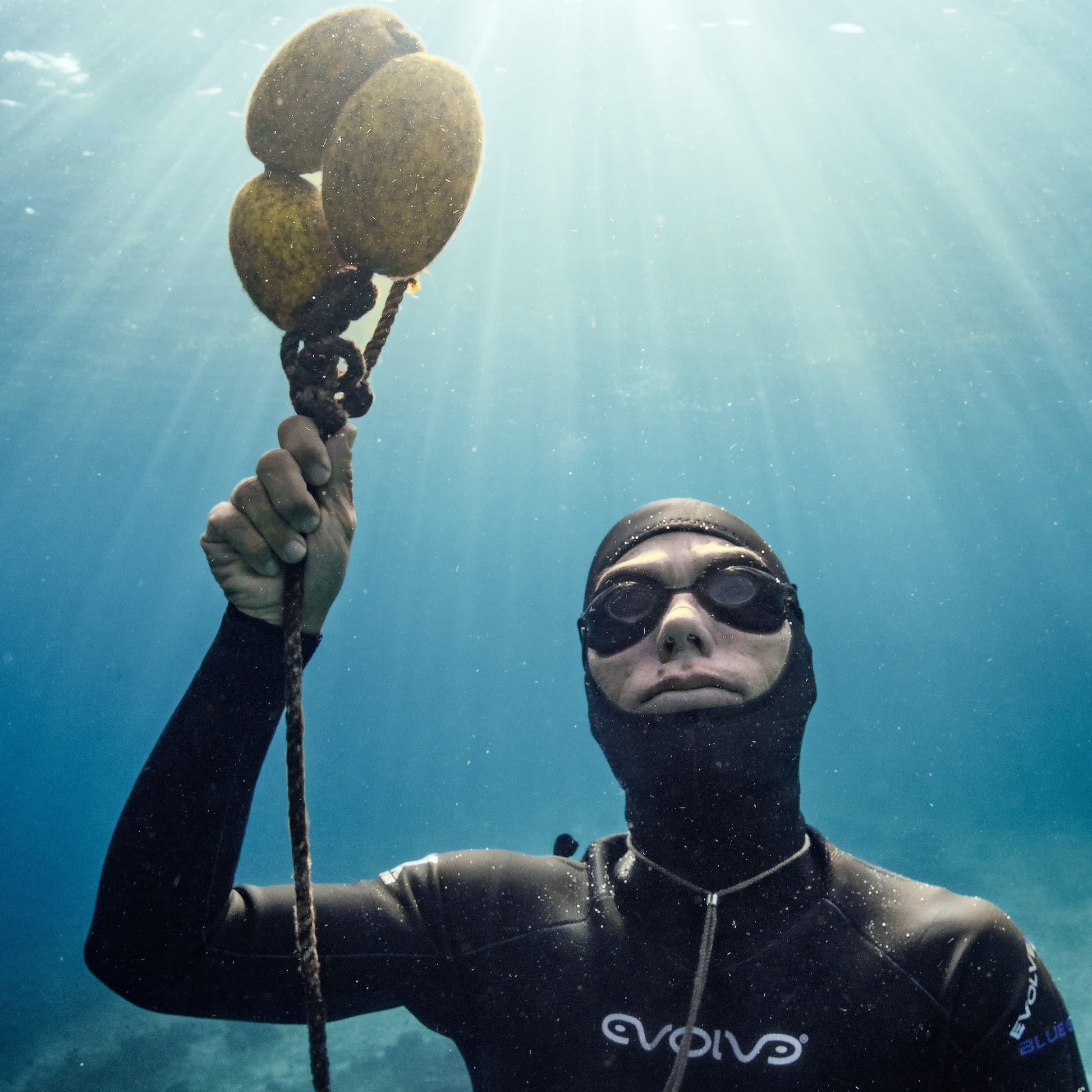 戴上 Evolve FREEQ™ 蛙鏡潛水:兼具清晰視野與免平壓的雙重優勢。